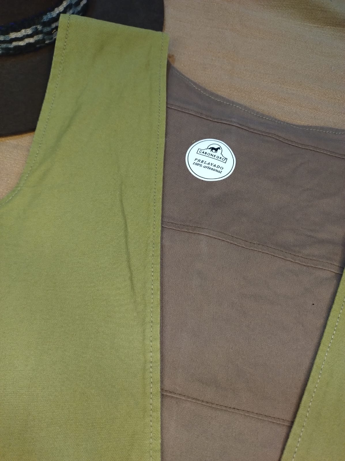 Confeccionado en gabardina de 7 onzas con spandex, combina estructura y adaptación al cuerpo. La leve elasticidad aporta comodidad sin perder firmeza. La tela es prelavada, garantizando estabilidad en sus medidas desde el primer uso.