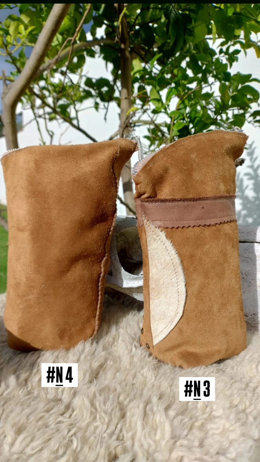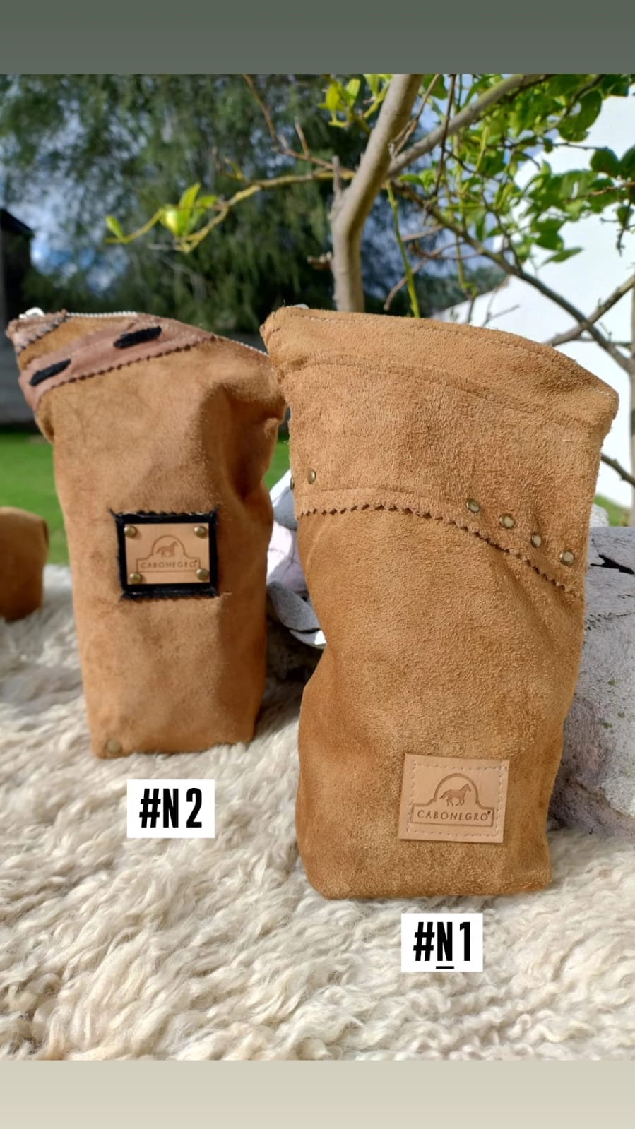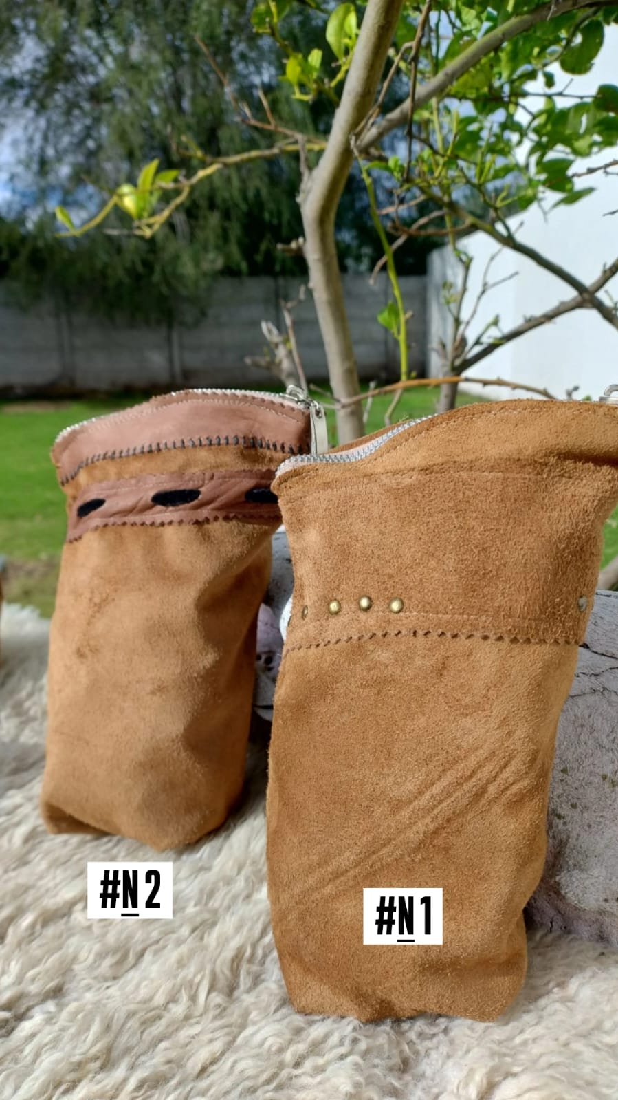 Estas yerberas nacen a partir del mismo diseño funcional, pero son intervenidas artesanalmente con tachas y recortes de cuero, dando lugar a piezas únicas, irrepetibles.